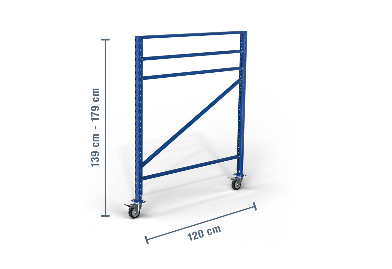 • 1 x 1.390 - 1.790 mm stojak / regulacja wysokości/ na kółkach do regału magazynowego LR2000 / 120 cm głębokości
