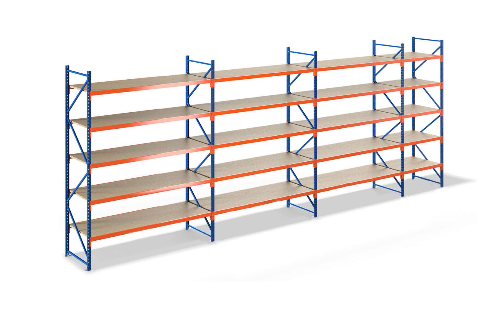 8,0 m regał magazynowy LR2000 / 60 cm głębokości / 2,5 m wysokości / 5 poziomy / półki drewno