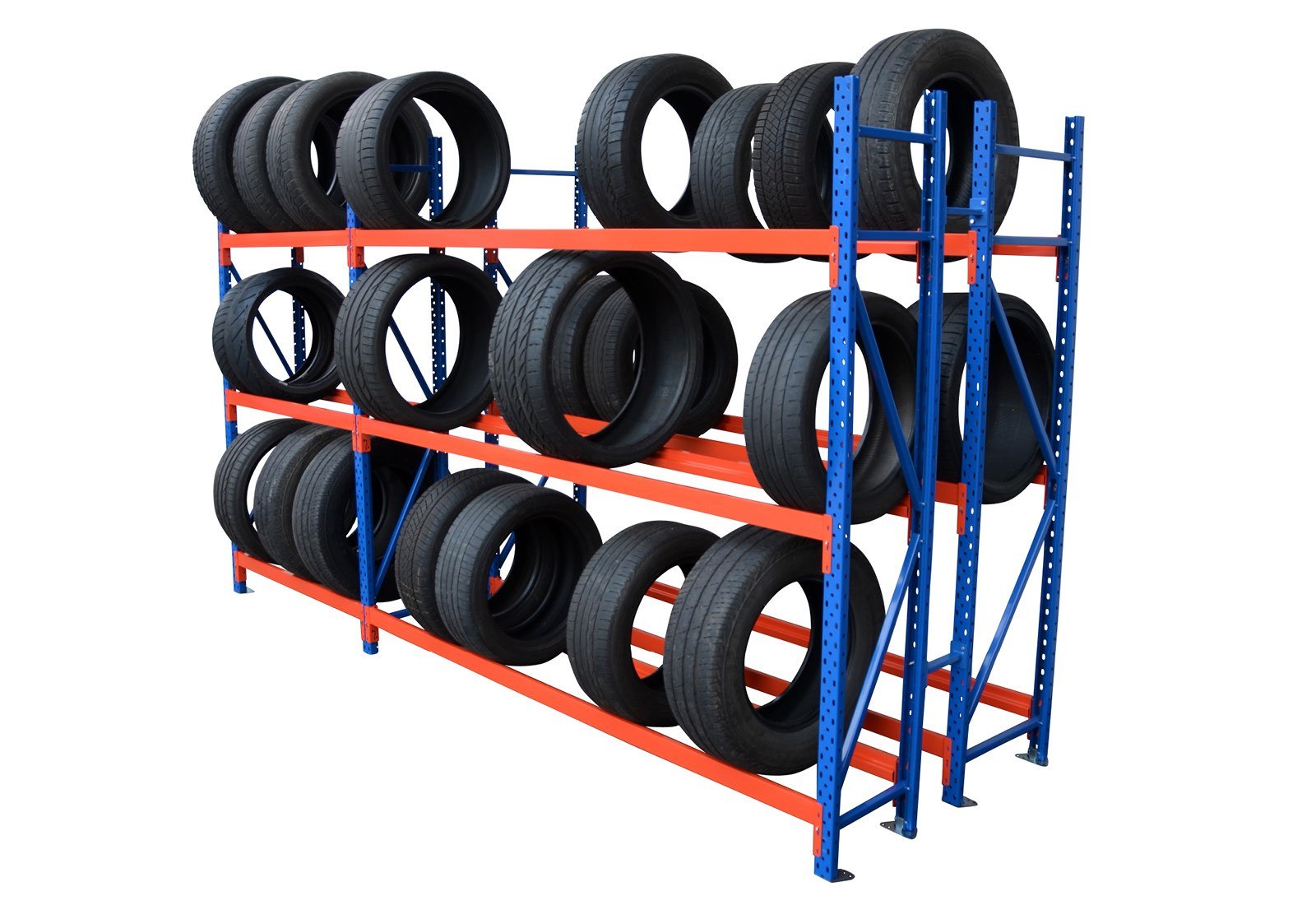 - Regały na opony można konfigurować indywidualnie, wybierając żądane długości przęseł. Dzięki modułowej konstrukcji regały można w każdej chwili rozbudować.