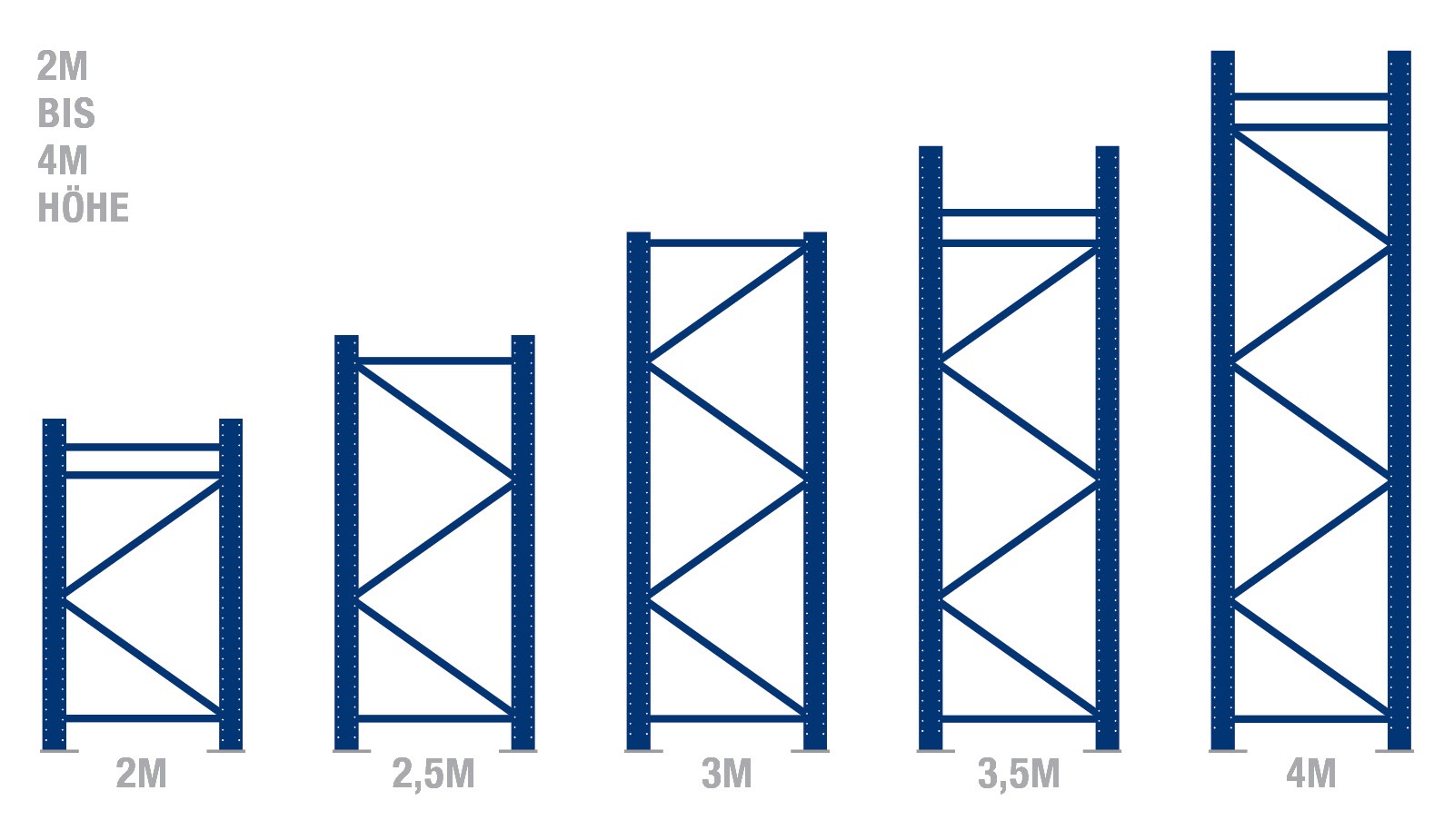 - Wysokość regału: od dwóch do czterech metrów