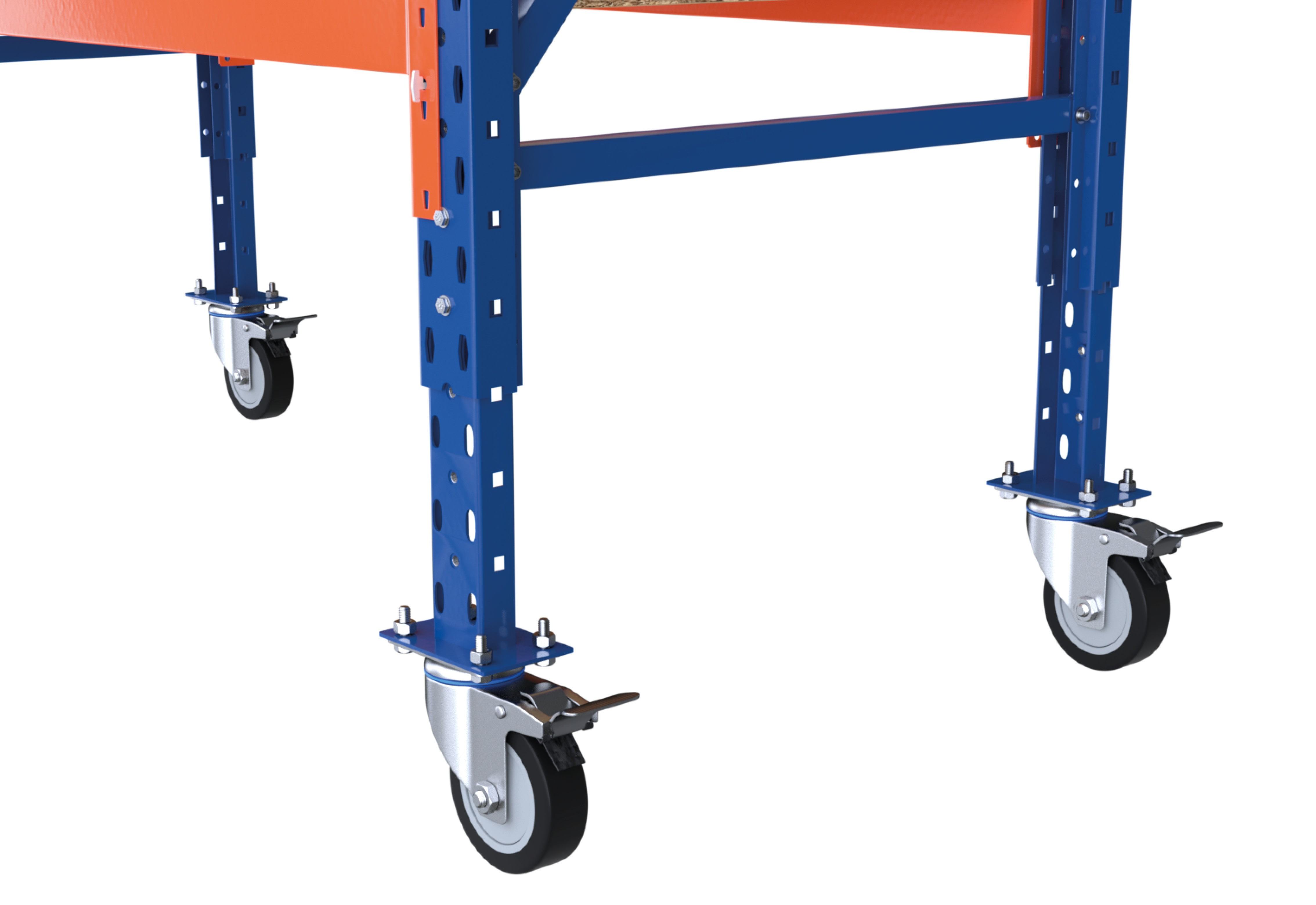 Dzięki podstawie o regulowanej wysokości z kółkami, wysokość regału na opony lub wózka na opony można regulować w zakresie do 40 centymetrów. Daje to indywidualnie regulowaną wysokość od 89 do 254 cm, w zależności od wybranego typu i rozmiaru podstawowego.