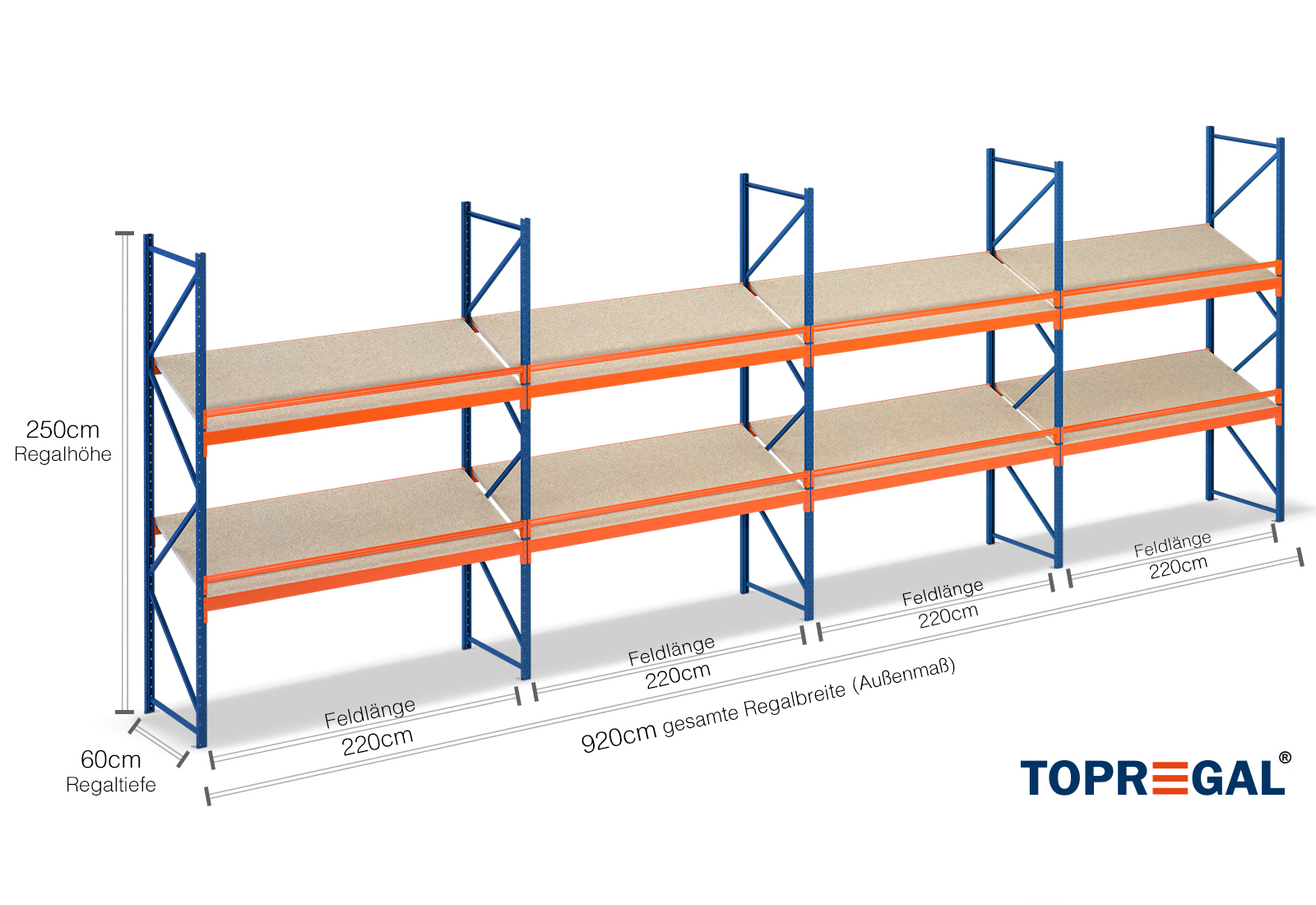 - 16 x trawers 220 cm szerokości z obciążeniem półki 300 kg