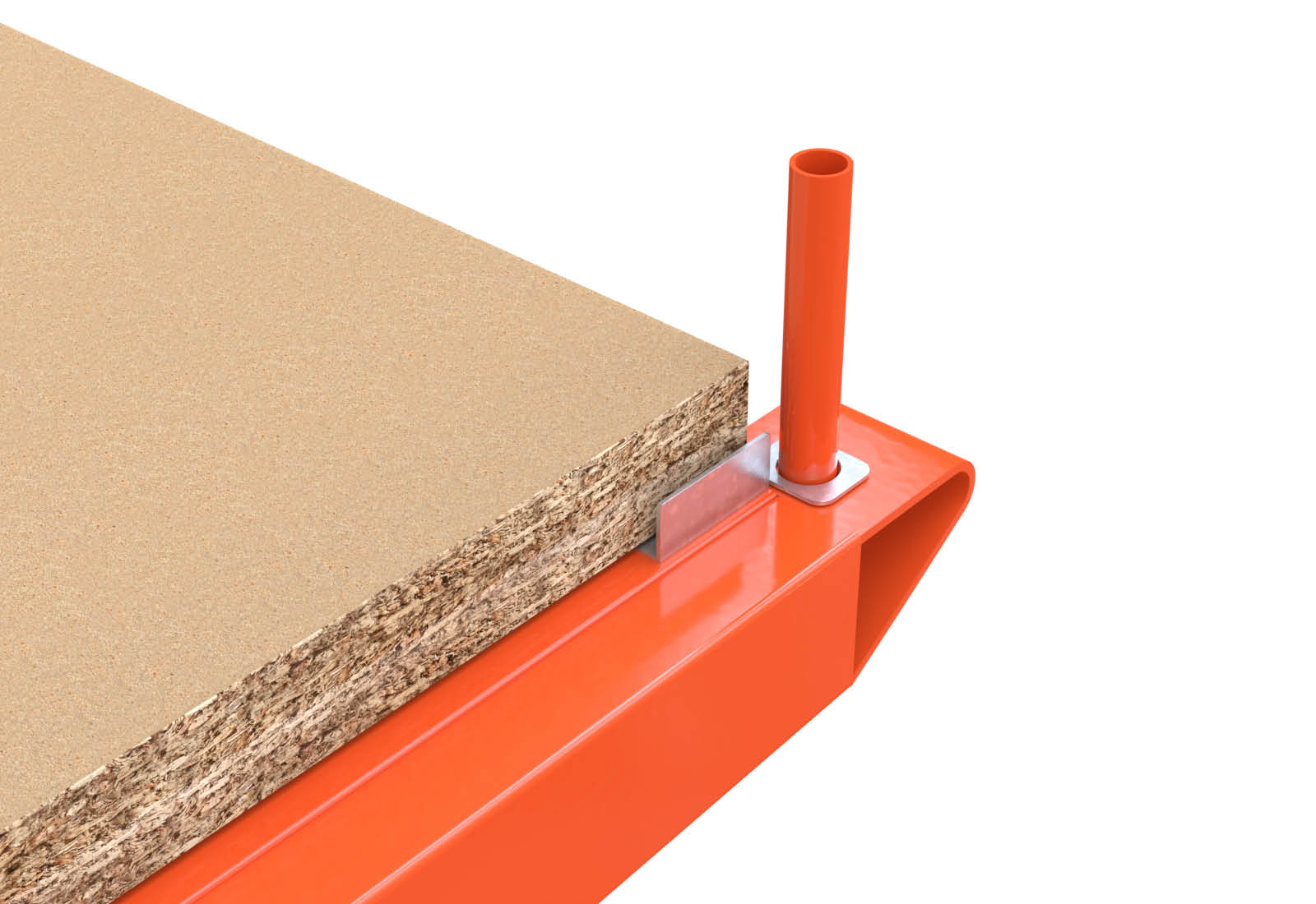 Wraz ze zintegrowaną półką regału, która składa się z płyty wiórowej o grubości 38 mm, można jeszcze bardziej elastycznie korzystać z regałów wspornikowych TOPREGAL i w sposób nieskomplikowany tworzyć dodatkowe powierzchnie magazynowe. Półka drewniana jest zamocowana w danym położeniu dwiema zawartymi w zakresie dostawy kładkami mocującymi z przodu i z tyłu i jest zabezpieczona przed ewentualnym zsunięciem się. Wraz z tymi kładkami mocującymi nośność półki regału wynosi do 400 kg.