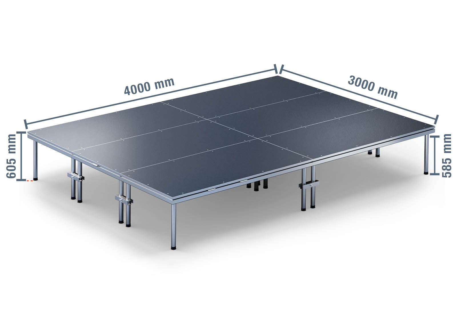 4 m x 3 m Scena mobilna EBM850/2, 605 mm wys., 6 moduły, 850 kg maks. obciążenie na moduł