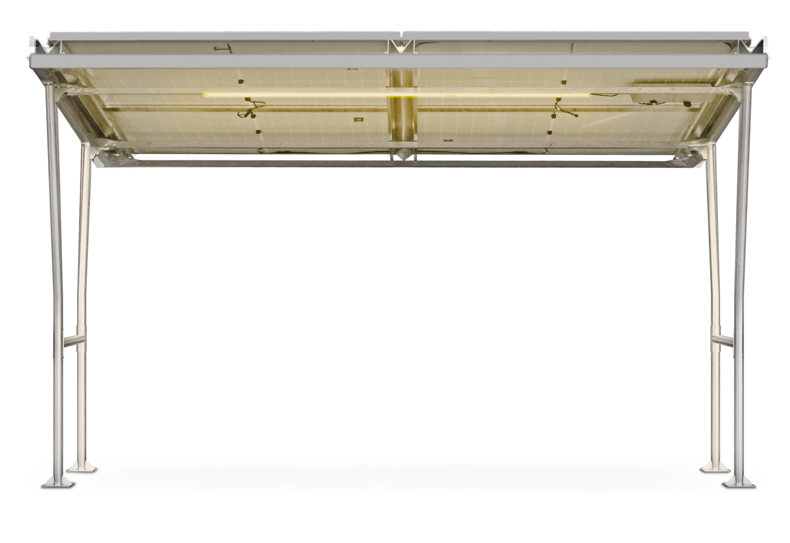 Wiata rowerowa F350-SL zapewnia rowerom i rowerom elektrycznym nie tylko ochronę przed wiatrem i warunkami atmosferycznymi. Dzięki modułom słonecznym 4, które są zamocowane na konstrukcji dachowej wiaty, można wytworzyć do 1,68 kWp energii elektrycznej. Duża powierzchnia paneli słonecznych i wydajny akumulator 24 V / 25 Ah zapewniają wystarczającą ilość energii nawet w pochmurne dni lub przy niekorzystnym ustawieniu, dzięki czemu oświetlenie jest zawsze gotowe do użycia. Każdy moduł słoneczny ma maksymalną moc 420 Wp. Moduły słoneczne są również wodoodporne: dzięki klasie ochrony nawet gniazdo przyłączeniowe jest odporne na zachlapania. Duże obciążenie dachu do 80 kg/m² zapewnia bezpieczne schronienie nawet podczas intensywnych opadów śniegu.