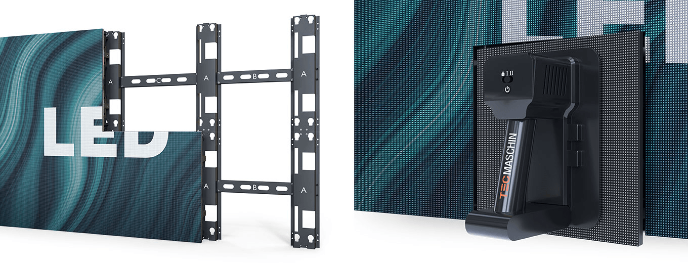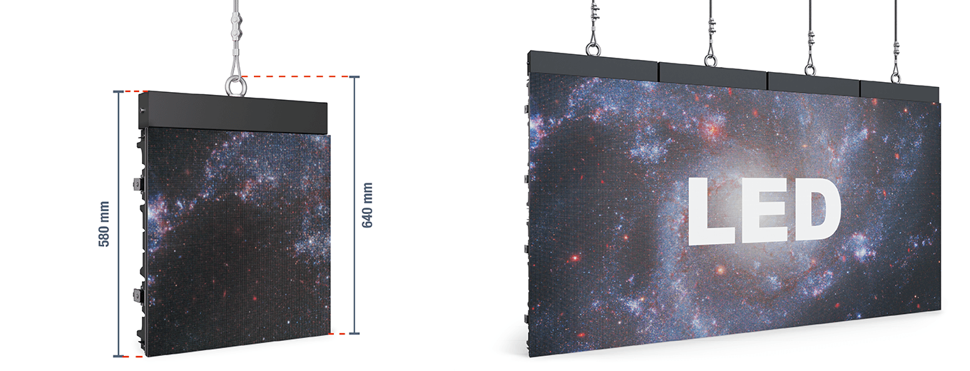 Niezależnie od warunków przestrzennych, istnieje optymalna konfiguracja dla niemal każdego zastosowania. To, czy wolisz mieć ścianę LED podwieszoną pod sufitem, czy zamontowaną na ścianie, zależy wyłącznie od Ciebie. Możliwa jest również konserwacja od przodu lub od tyłu. Regulowany kąt montażu do 15° pomaga nawet w bardzo nietypowych konfiguracjach dla wersji podwieszanej, a nawet umożliwia wypukłe lub wklęsłe zakrzywione instalacje.
