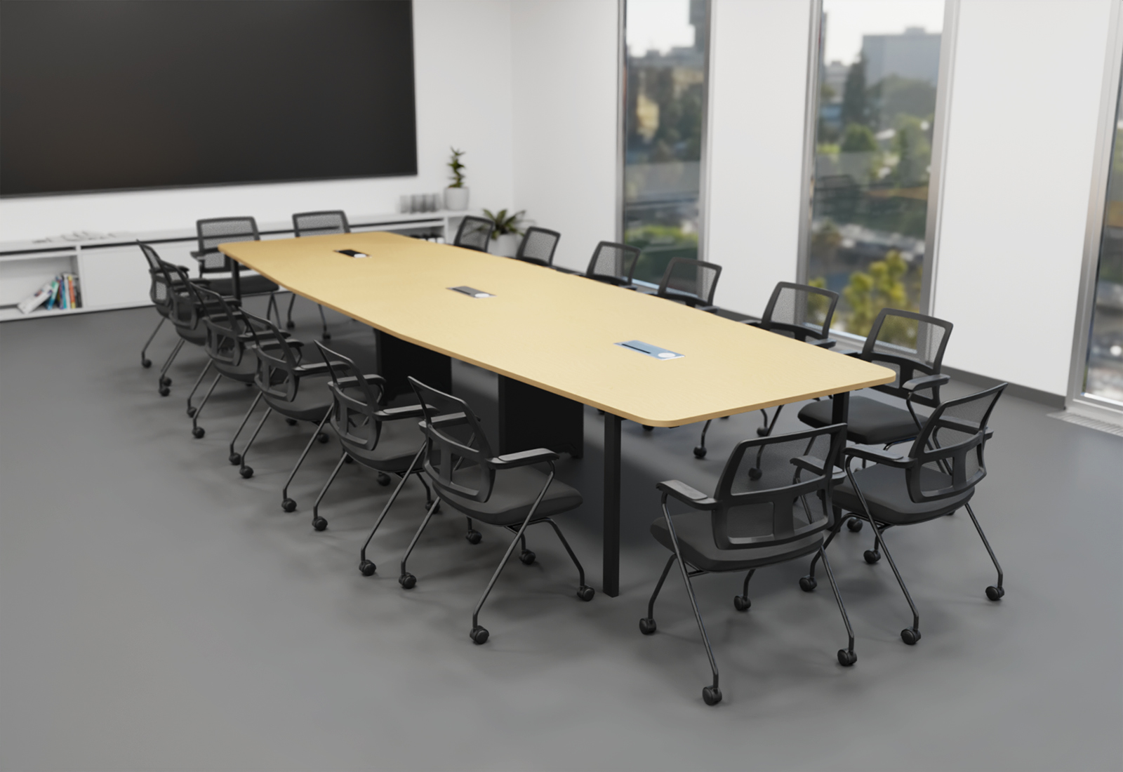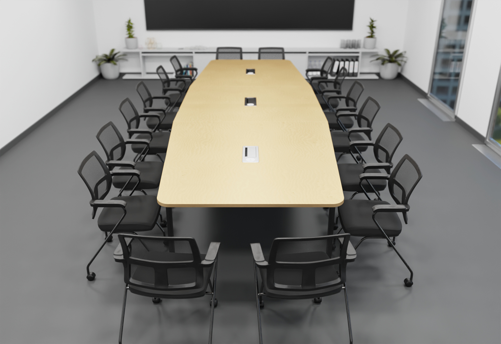 Stół konferencyjny ELLA480i beżowy z indukcyjną stacją ładującą + 16 krzesła EMMA