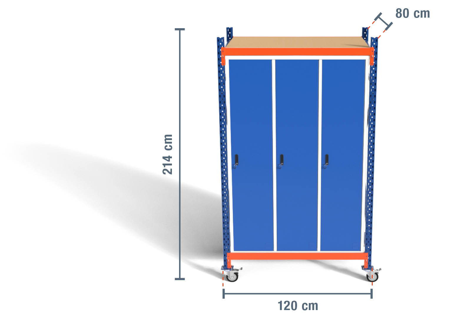 Wysokość szafki wynosi 2.140 mm, szerokość 1.200 mm i głębokość 800 mm.