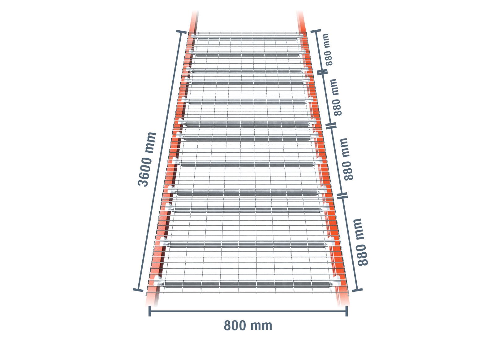 • 360 cm szeroki wspornik z siatki drucianej składający się z 4 Modułów 880 mm x 800 mm